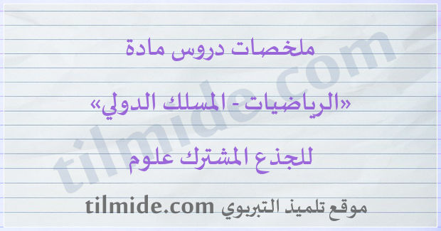 نقدم إليكم زوار «موقع تلميذ» ملخصات دروس مادة الرياضيات وفق الدروس المقررة خلال الدورة الأولى والدورة الثانية بالجذع المشترك العلمي المسلك الدولي والجذع المشترك التكنولوجي المسلك الدولي، ونهدف من خلال توفيرنا لملخصات هذه الدروس إلى مساعدة تلاميذ الجذع المشترك المسلك الدولي على الاستيعاب والفهم الجيد لدروس مادة الرياضيات، وتشجيعا لهم على التكوين الذاتي والرفع من مستواهم استعداداً لإنجاز التمارين التوليفية والفروض الكتابية المحروسة والفروض المنزلية في مادة الرياضيات، وهذه الدروس متاحة للتحميل من خلال الجدول أسفله على شكل ملفات بصيغة (pdf)، حتى يتسنى لتلاميذ الجذع المشترك المسلك الدولي تحميل النموذج الذي يناسبهم من أجل الاستعانة به في تحضير دروسهم.